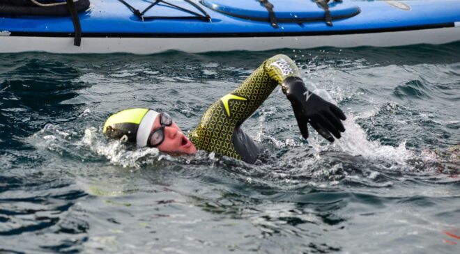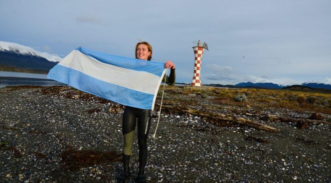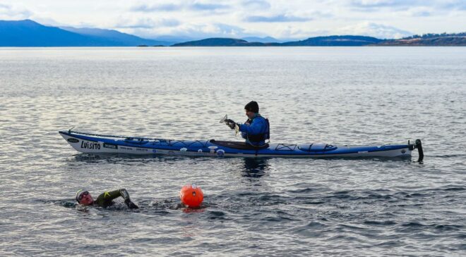La Municipalidad de Ushuaia, a través de la Secretaría de Turismo, acompañó el cruce a nado del Canal Beagle realizado este lunes 18 de agosto por la atleta española e ingeniera náutica Begoña Alday, quien unió Cabo Peña (Argentina) con el Paso McKinlay (Chile), nadando un kilómetro y medio en las gélidas aguas del canal fueguino.