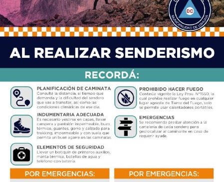 La Municipalidad de Ushuaia a través de Defensa Civil, solicita a los vecinos y vecinas que tomen los recaudos necesarios al momento de emprender una caminata en los espacios naturales que ofrece la provincia, teniendo en cuenta que inició la época de deshielo.