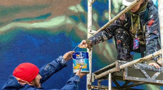 Alba, a través del programa global “Vení al Color”, transforma cientos de lugares en el mundo con pasión, protección y pintura, y continuará como proveedor de los insumos para las y los 11 muralistas seleccionados. Esta sexta edición se realiza bajo la temática “Hacernos Comunidad”, donde las y los artistas elegidos entre más de 100 postulantes, representarán temáticas de unidad, identidad, empatía y comunitarismo desde el 15 al 23 de marzo. Así, Antonela Gualla y Rodrigo Crespo de Ushuaia, Enrique Jorge Bernanrd y Sofía Hst de Río Grande, Julia Anahí Tiscornia de Río Negro, Adrián Cola y Martín Agazzi de Buenos Aires, Agustina Cantoni de San Juan, Soledad Moisas de Ayacucho, Lucas Artola de La Plata y el artista invitado Sebastián Daels de Buenos Aires, sumarán sus obras a las más de 350 presentes a lo largo y ancho de la ciudad.