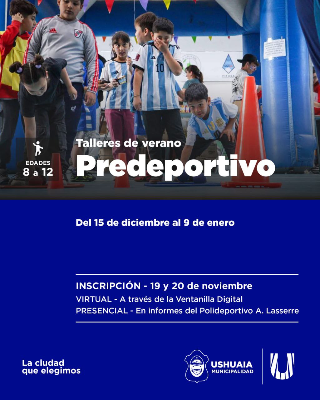 El miércoles 19 y jueves 20 de noviembre a través de la Ventanilla Digital, y presencial en el sector Informes del Polideportivo Augusto Lasserre se llevarán a cabo las inscripciones. La inscripción por vía digital se habilitará a partir de las 10 hs de la mañana del miércoles.