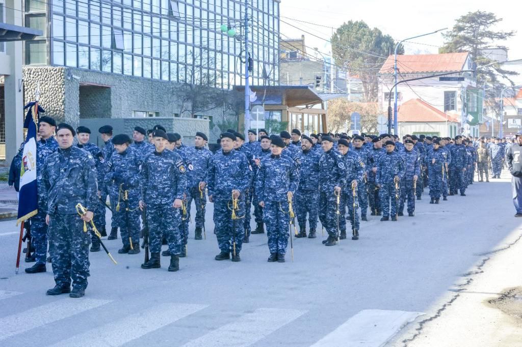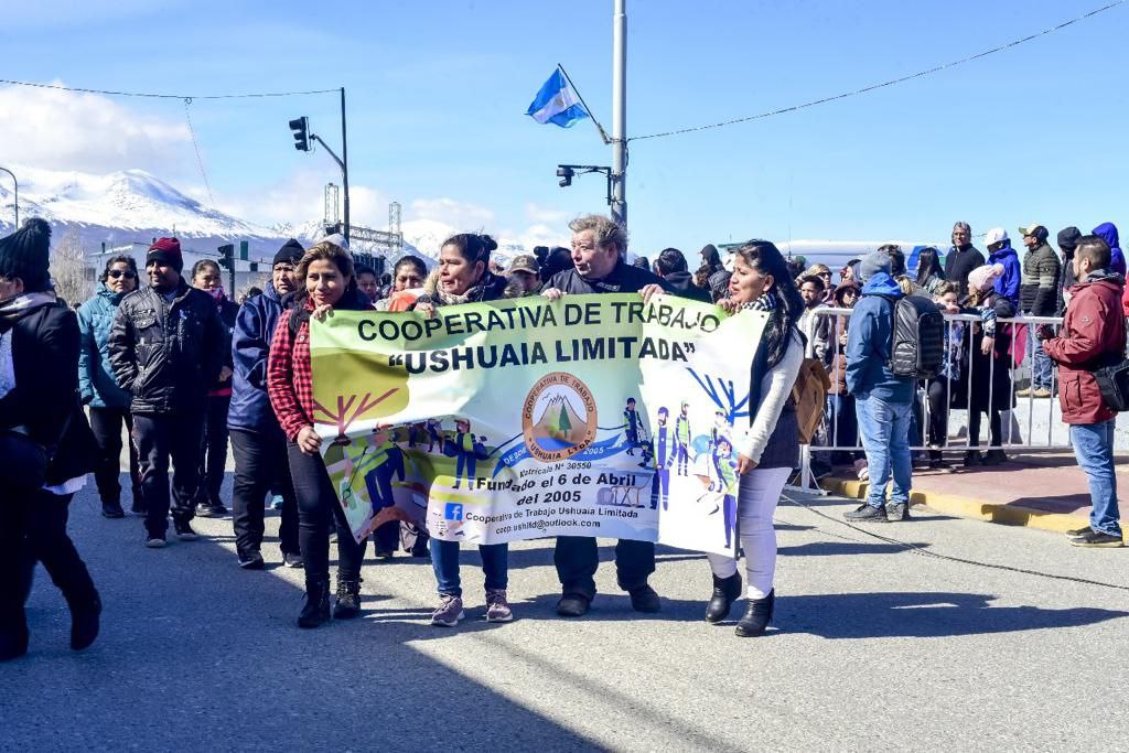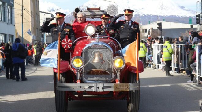 El intendente de Ushuaia Walter Vuoto recibió desde el palco ubicado en avenida Maipú a las instituciones, asociaciones y organizaciones civiles y militares que celebraron el aniversario de la ciudad en el tradicional desfile que comenzó a las 11 horas. Con una breve reseña histórica se presentó cada institución y frente al palco saludaron a las autoridades y entregaron presentes y recuerdos distintivos. Más de 15 mil vecinos, vecinas y turistas se volcaron a las calles céntricas, en una verdadera fiesta popular.