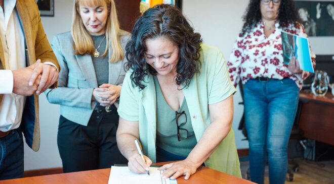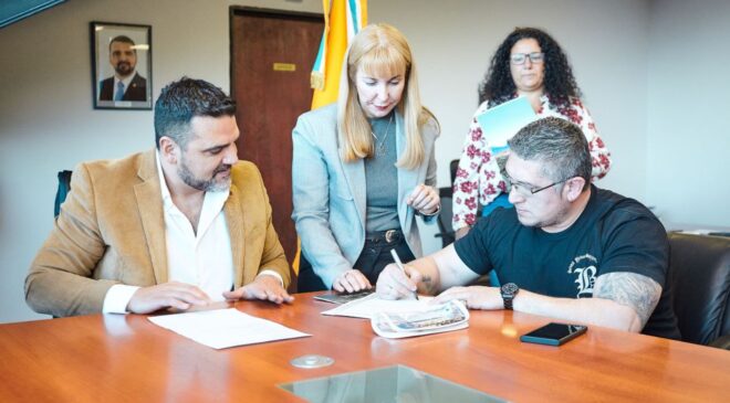 El acto se realizó en el edificio municipal de calle Arturo Coronado y contó con la presencia del jefe de Gabinete, Sebastián Iriarte, y la secretaria de Hábitat y Ordenamiento Territorial, Lorena Henriques Sanches.