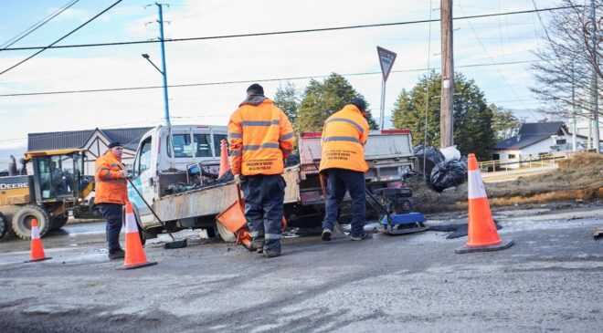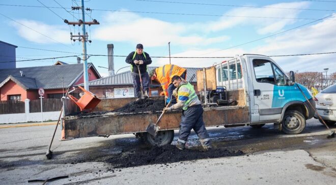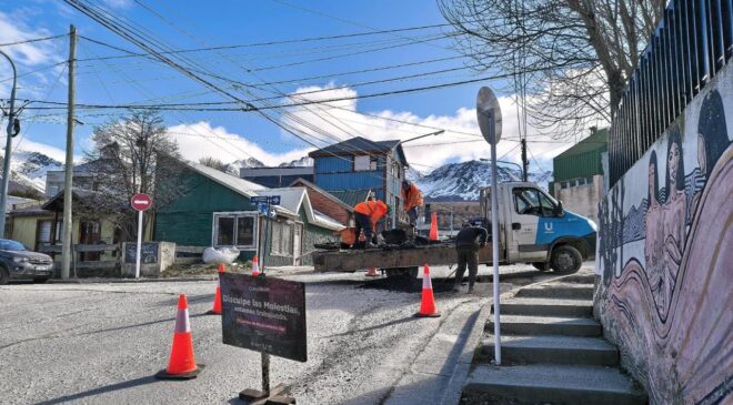 La Municipalidad de Ushuaia a través de la Subsecretaría de Coordinación y Gestión de la Obra Pública dependiente de la Secretaría de Planificación e Inversión Pública, continúa con los trabajos de mantenimiento y reparación en la vía pública, en horarios diurnos y nocturnos enmarcados en el Plan de Bacheo.