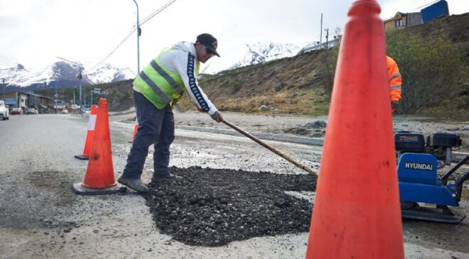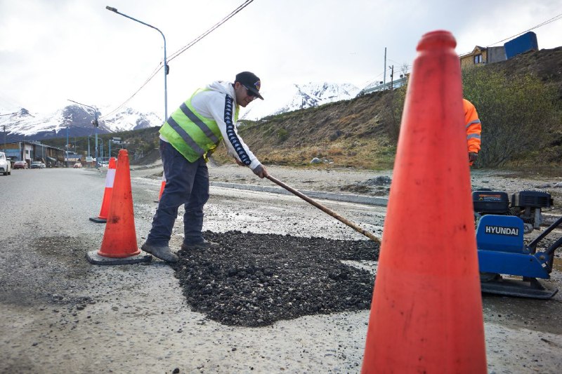 La Municipalidad de Ushuaia, a través de la Secretaría de Inversión y Planificación Pública, da continuidad al plan de bacheo de calles y avenidas que se puso en marcha tiempo atrás con la mejora de las condiciones climáticas y se intensificó con la finalización de la temporada invernal.