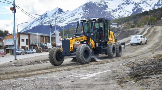 En ese marco, en el inicio de la semana se realizaron trabajos de remediación en la avenida Alem, y paralelamente se realizó el mejoramiento de suelo en calles de tierra en diversos barrios.