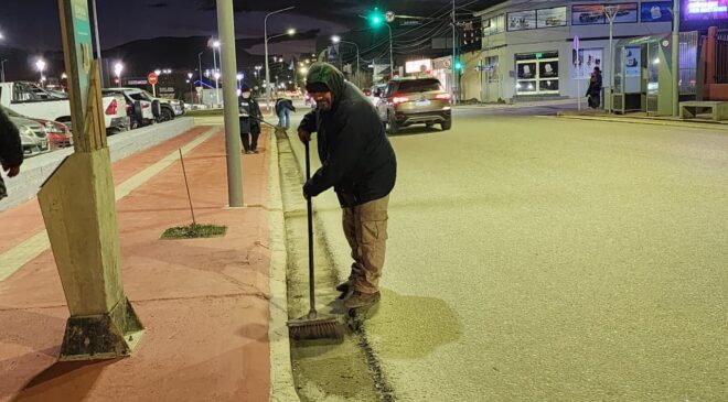 En ese marco, durante el jueves y viernes personal de la Secretaría de Ambiente y Desarrollo Sustentable intervino en las avenidas Prefectura Naval y Maipú, y en forma paralela la empresa Agrotécnica Fueguina hizo lo propio en arterias transversales del centro de la ciudad.