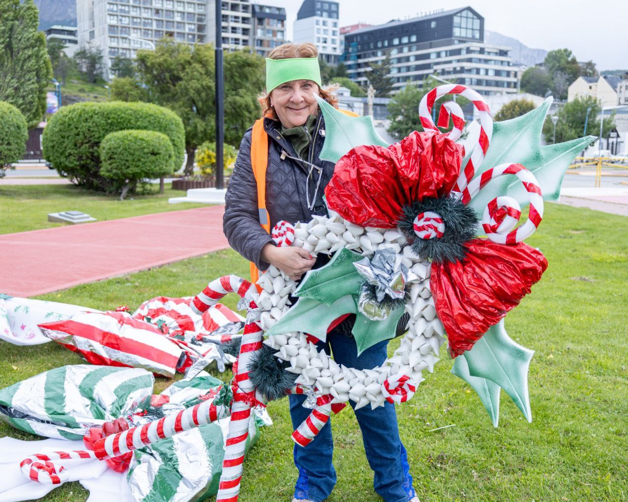 La Municipalidad de Ushuaia, a través de la Secretaría de Políticas Sociales, Sanitarias y Derechos Humanos, llevó adelante la colocación de la ornamentación navideña en distintos sectores de la ciudad, en el marco del programa de confección de adornos elaborados con materiales reciclados.