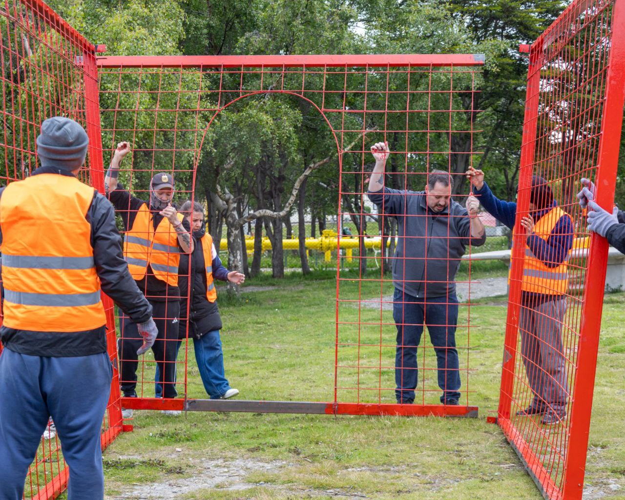 Las intervenciones se realizaron en la calle San Martín —entre Juan Manuel de Rosas y 25 de Mayo—, el Paseo de las Rosas, el sendero interno hacia el Cartel de Ushuaia y el sector del Árbol de Navidad, donde tendrá lugar el tradicional encendido que dará inicio formal al recorrido festivo.