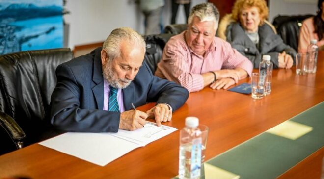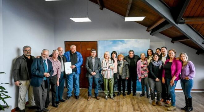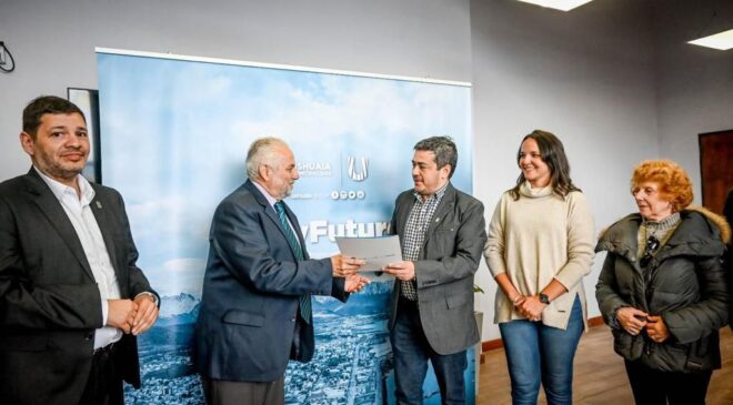 El jefe de Gabinete de la Municipalidad de Ushuaia, Sebastián Iriarte, entregó a autoridades de la Sociedad Italiana el título de propiedad del terreno en el que se asienta la sede de la institución, ubicada en Marcos Zar 403.