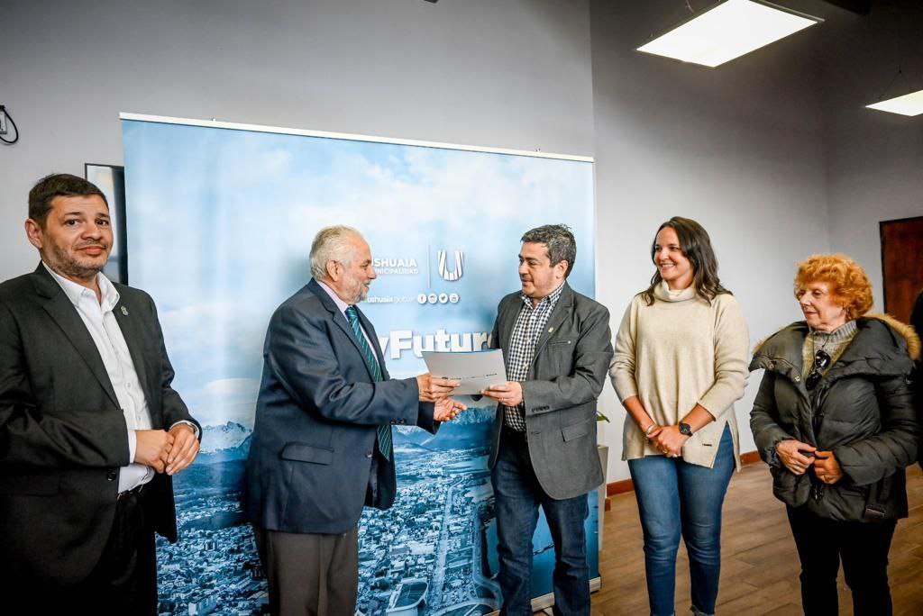 El jefe de Gabinete de la Municipalidad de Ushuaia, Sebastián Iriarte, entregó a autoridades de la Sociedad Italiana el título de propiedad del terreno en el que se asienta la sede de la institución, ubicada en Marcos Zar 403.
