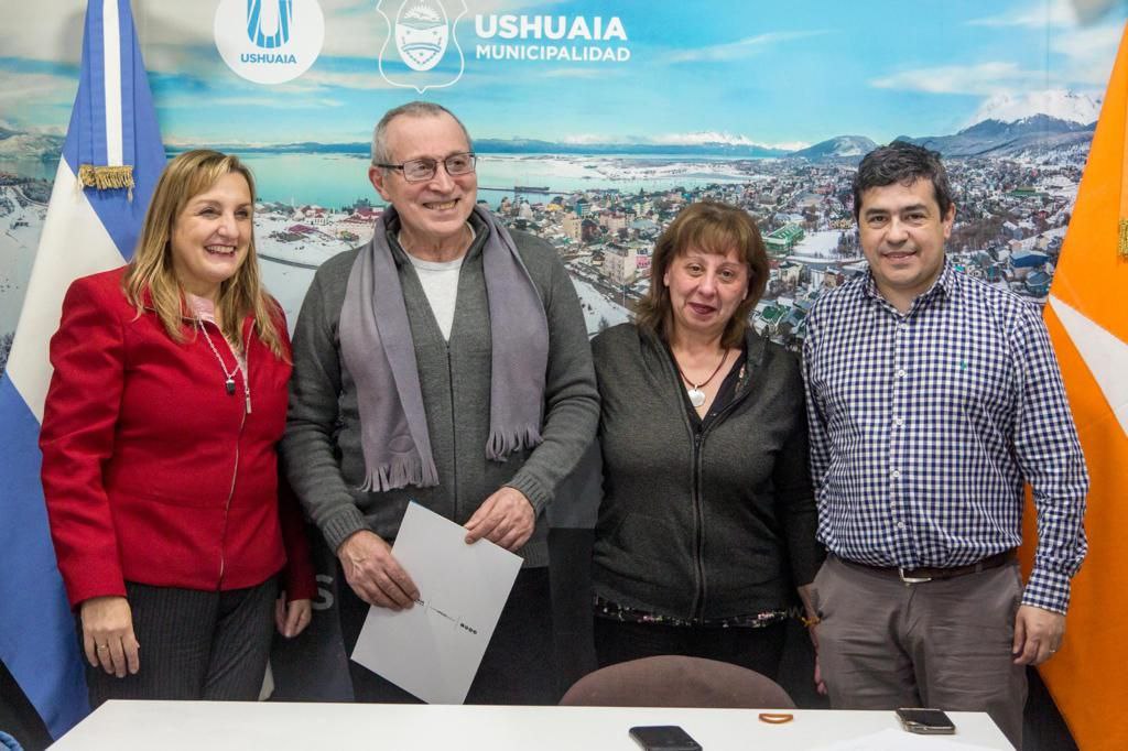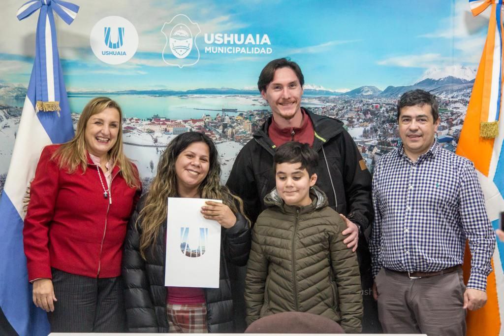 La Municipalidad de Ushuaia hizo entrega de títulos de propiedad a 10 familias de la ciudad en un acto encabezado por el jefe de Gabinete municipal, Sebastián Iriarte, por la secretaria de Planificación e Inversión Pública, Gabriela Muñiz Siccardi, y por la Escribana municipal, Patricia Borla.