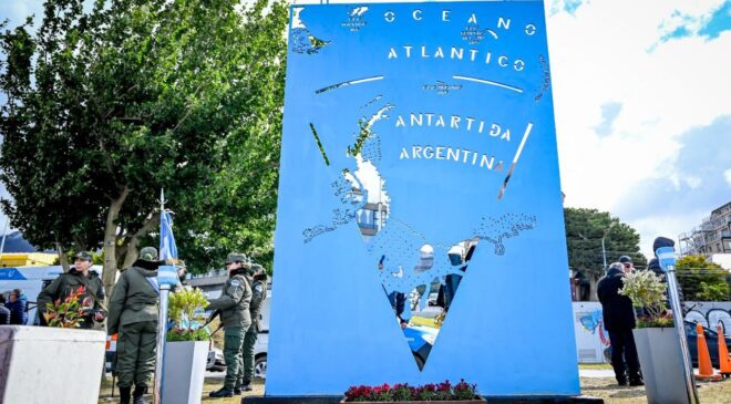 En el marco del Día de la Antártida y de la conmemoración de los 120 años de presencia ininterrumpida de la Argentina en el Continente Blanco, la Municipalidad de Ushuaia inauguró el cartel del Sector Antártico Argentino. En representación del intendente Walter Vuoto, el jefe de Gabinete Sebastián Iriarte encabezó el acto oficial de emplazamiento del cartel en conmemoración del aniversario, realizado por trabajadores del astillero Tandanor con chapa naval de industria nacional.