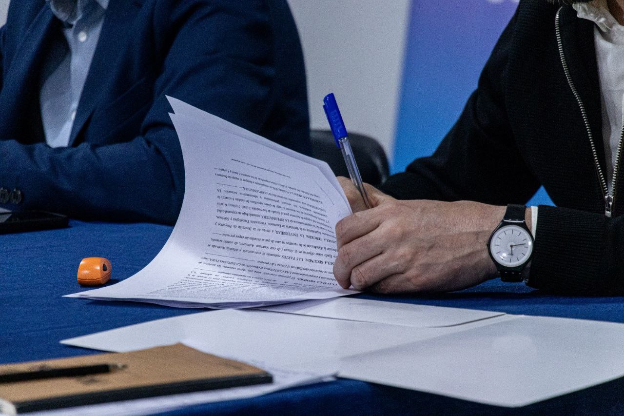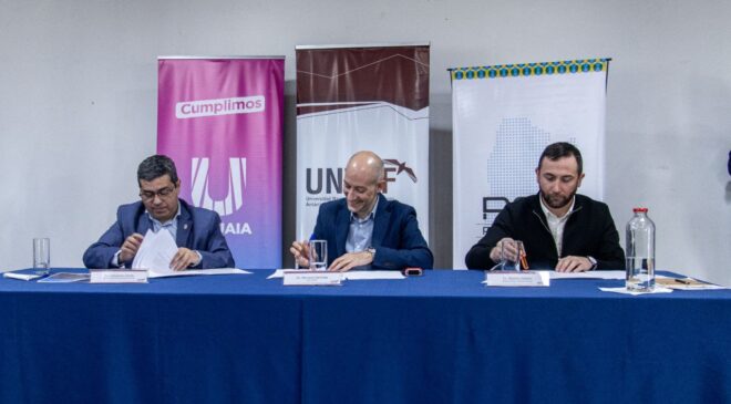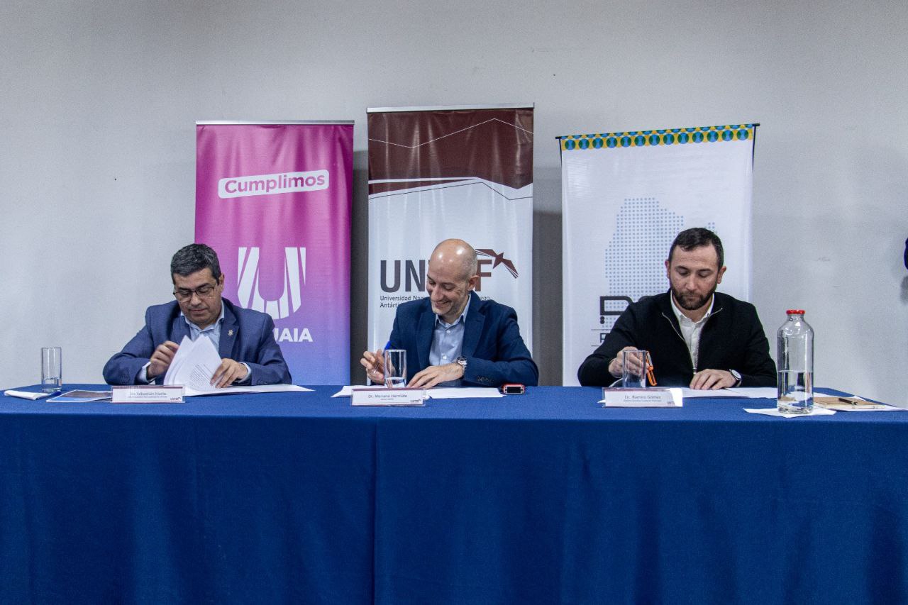La rúbrica estuvo a cargo del jefe de Gabinete del Municipio, Sebastián Iriarte; del rector de la UNTDF AeIAS, Mariano Hermida; y del presidente de Participar, Ramiro Gómez. Estuvieron presentes integrantes del Gabinete municipal, ediles, docentes y no docentes de la Universidad y miembros de la Fundación.