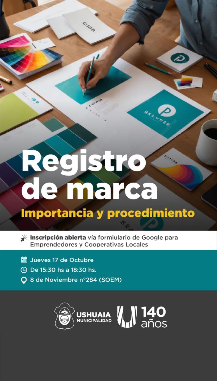 La Municipalidad de Ushuaia a través la Secretaría de Políticas Sociales, Sanitarias y Derechos Humanos mediante un trabajo articulado con la Secretaría de la Mujer, Géneros y Diversidades invita a los vecinos y vecinas a participar de la capacitación sobre el registro de marca.
