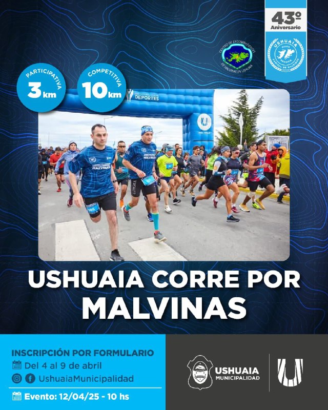 Cabe recordar que, en el marco de las actividades pautadas en la ciudad, por el 43° Aniversario de la Gesta de Malvinas, el Instituto Municipal de Deportes junto a la Secretaría de Asuntos Malvinas llevarán adelante una maratón de la que participarán unos 350 atletas en dos instancias; la participativa de 3 kilómetros y la competitiva de 10 kilómetros.
