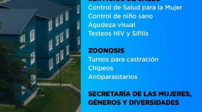 En el barrio Pipo, la actividad se desarrollará de 11 a 15 horas en el Jardín N° 28. Allí, la Secretaría de Políticas Sociales, Sanitarias y DDHH a través del área de Salud Municipal realizará controles para la mujer, controles de niño sano, test de agudeza visual y testeos de HIV y sífilis. Además, la Dirección de Zoonosis entregará turnos para castración, llevará adelante chipeo de mascotas y entregará antiparasitarios. También estará presente la Secretaría de las Mujeres, Géneros y Diversidades para brindar asesoramiento e informar sobre las propuestas e iniciativas que impulsa el área.