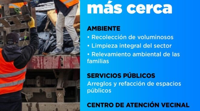 Asimismo, personal de Servicios Públicos realizará arreglos y refacciones en espacios comunitarios, mientras que en el Centro de Atención Vecinal se brindará atención a vecinos y vecinas.