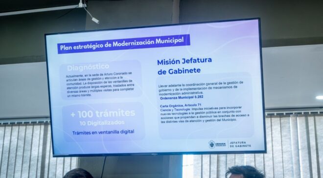 Entre ellos se destacó el plan estratégico de modernización municipal, que incluye la agilización de los procesos administrativos internos y la digitalización y simplificación de trámites municipales, garantizando además la seguridad jurídica y la privacidad de datos relacionados a los vecinos y vecinas de la ciudad.