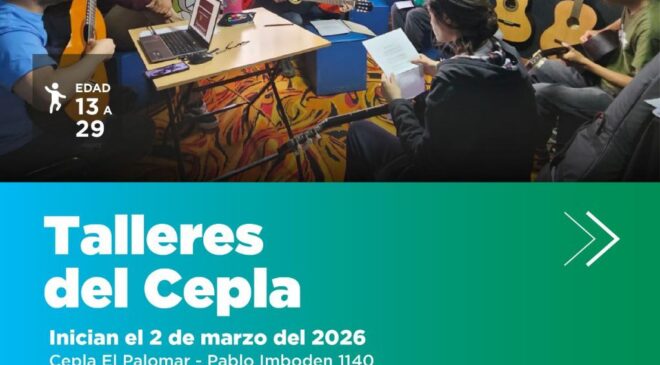 Las actividades se desarrollarán en la sede ubicada en Pablo Imboden 1140, barrio 245 Viviendas. La inscripción se realizará mediante formulario online disponible en la biografía de redes sociales institucionales. Los cupos son limitados. Link: https://inscripciones.website/talleres-en-el-cepla-el-palomar/ Con esta propuesta, la Municipalidad continúa fortaleciendo espacios de prevención, inclusión y participación juvenil en el territorio.