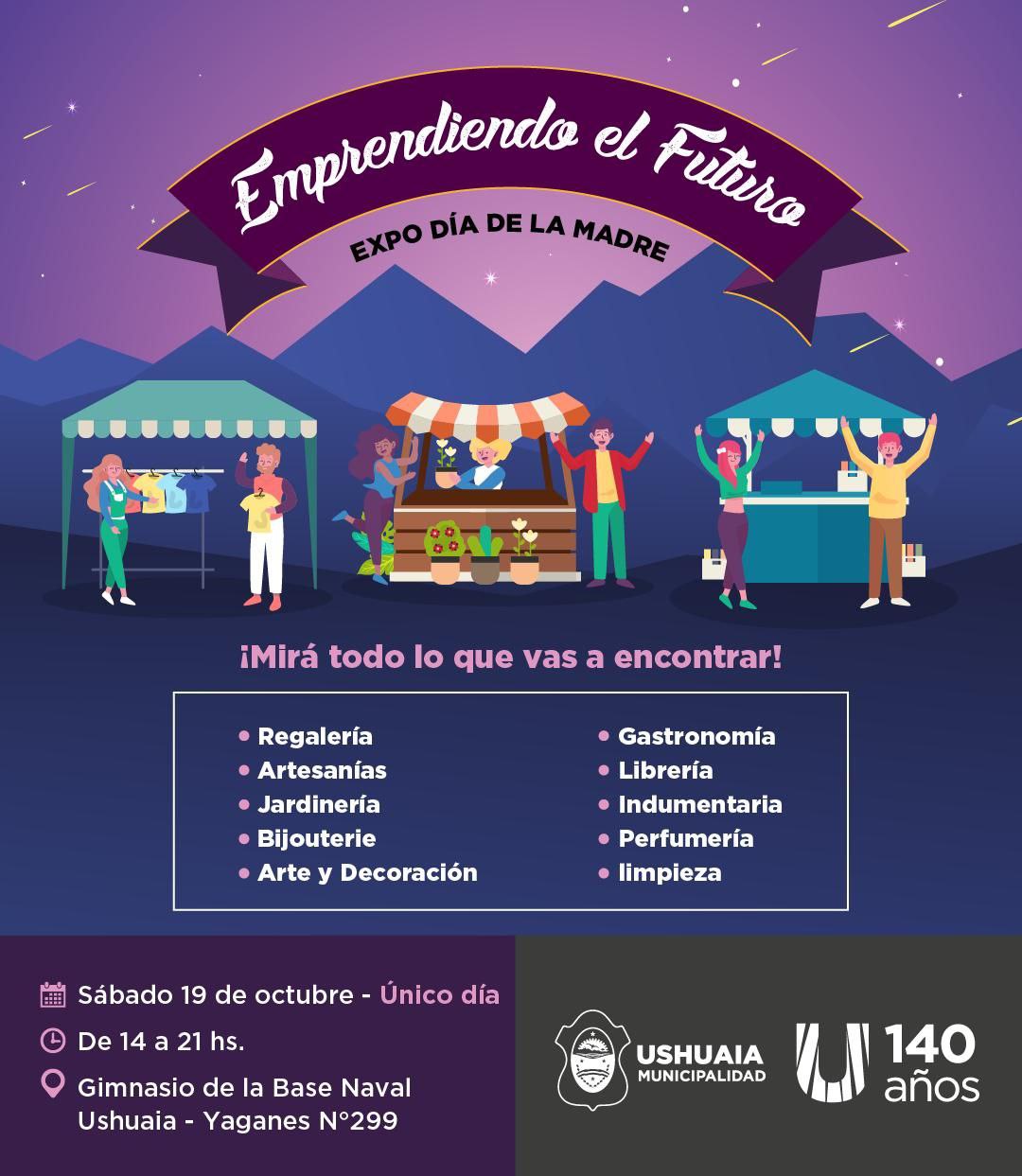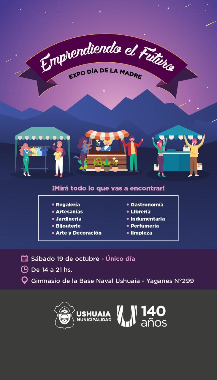 Este sábado 18 de octubre la Municipalidad de Ushuaia llevará adelante una edición especial por el Día de la Madre de la Expo Feria “Emprendiendo el Futuro”.