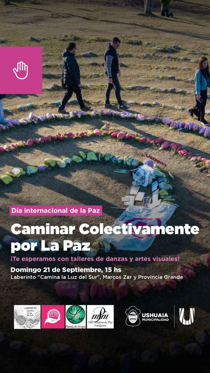 La Secretaría de Cultura y Educación de la Municipalidad de Ushuaia, en el marco del Día Internacional de la Paz, invita a vecinos y vecinas a “Caminar Colectivamente por la Paz” este domingo 21 de septiembre a las 15:00 horas en el espacio verde de Marcos Zar y Provincia Grande.