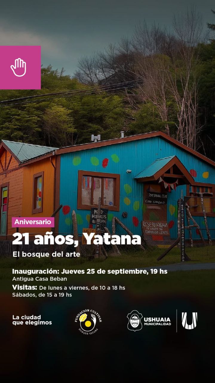 La Secretaría de Cultura y Educación de la Municipalidad de Ushuaia acompañará en la Antigua Casa Beban la muestra “21 Años, Yatana: El Bosque del Arte”, impulsada en articulación con la Fundación Cultivar Bosque Yatana. La misma, que tendrá su inauguración el día jueves 25 de septiembre a las 19:00 horas, podrá ser visitada hasta el miércoles 8 de octubre.