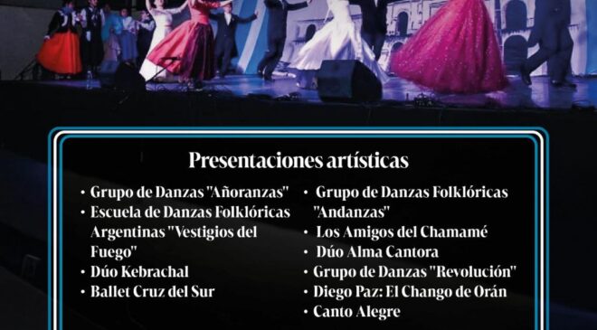 La iniciativa, que es impulsada por el Centro Tradicionalista de Ushuaia “Virginia Choquintel” y cuenta con el acompañamiento municipal, contará con un bono contribución de $2.000 y presentará al Grupo de Danzas “Añoranzas”, la Escuela de Danzas Folklóricas Argentinas “Vestigios del Fuego”, Dúo Kebrachal, el Grupo de Danzas Folklóricas “Andanzas”, Los Amigos del Chamamé, Dúo Alma Cantora, el Grupo de Danzas “Revolución”, el Ballet Cruz del Sur, Diego Paz: el Chango de Orán, Canto Alegre. Amenizando la jornada, estarán las tradicionales pulperías con comidas y bebidas típicas.