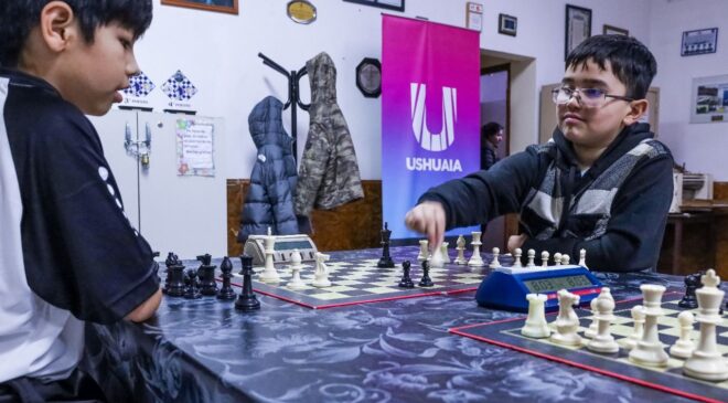 La Secretaría de Cultura y Educación de la Municipalidad de Ushuaia acompañó este domingo en el Centro de Ex-Combatientes ubicado en Alem N° 2008 el Primer Torneo Intercolegial de Ajedrez “Alfil Austral”.