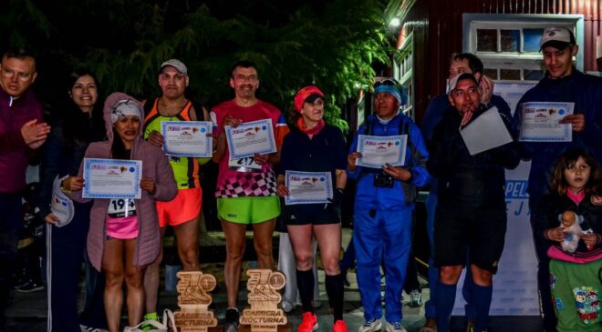 Alrededor de 500 personas participaron el sábado en la prueba atlética nocturna organizada por el periodista Julio Alday, con la colaboración del Instituto Municipal de Deportes de Ushuaia y el aporte de destacados atletas como Javier Vázquez y Víctor Quiñimpera.