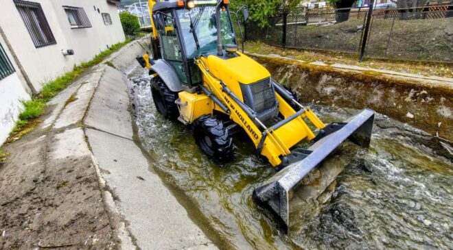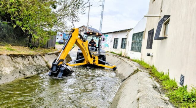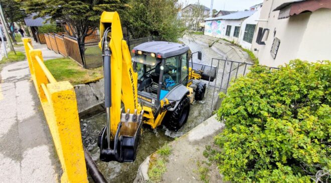 Asimismo, mediante el uso de maquinaria pesada, personal municipal realizó trabajos de limpieza y mantenimiento preventivo en el cauce del arroyo Buena Esperanza, especialmente en el sector con estructura de hormigón, a fin de asegurar un adecuado escurrimiento y evitar obstrucciones.
