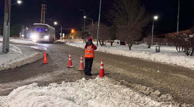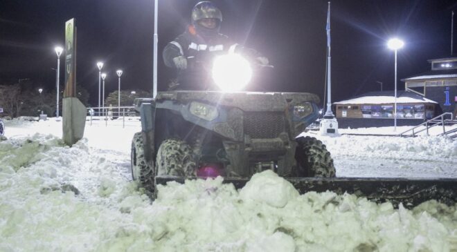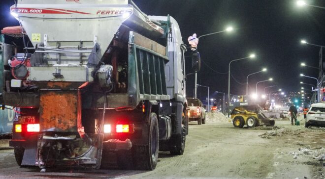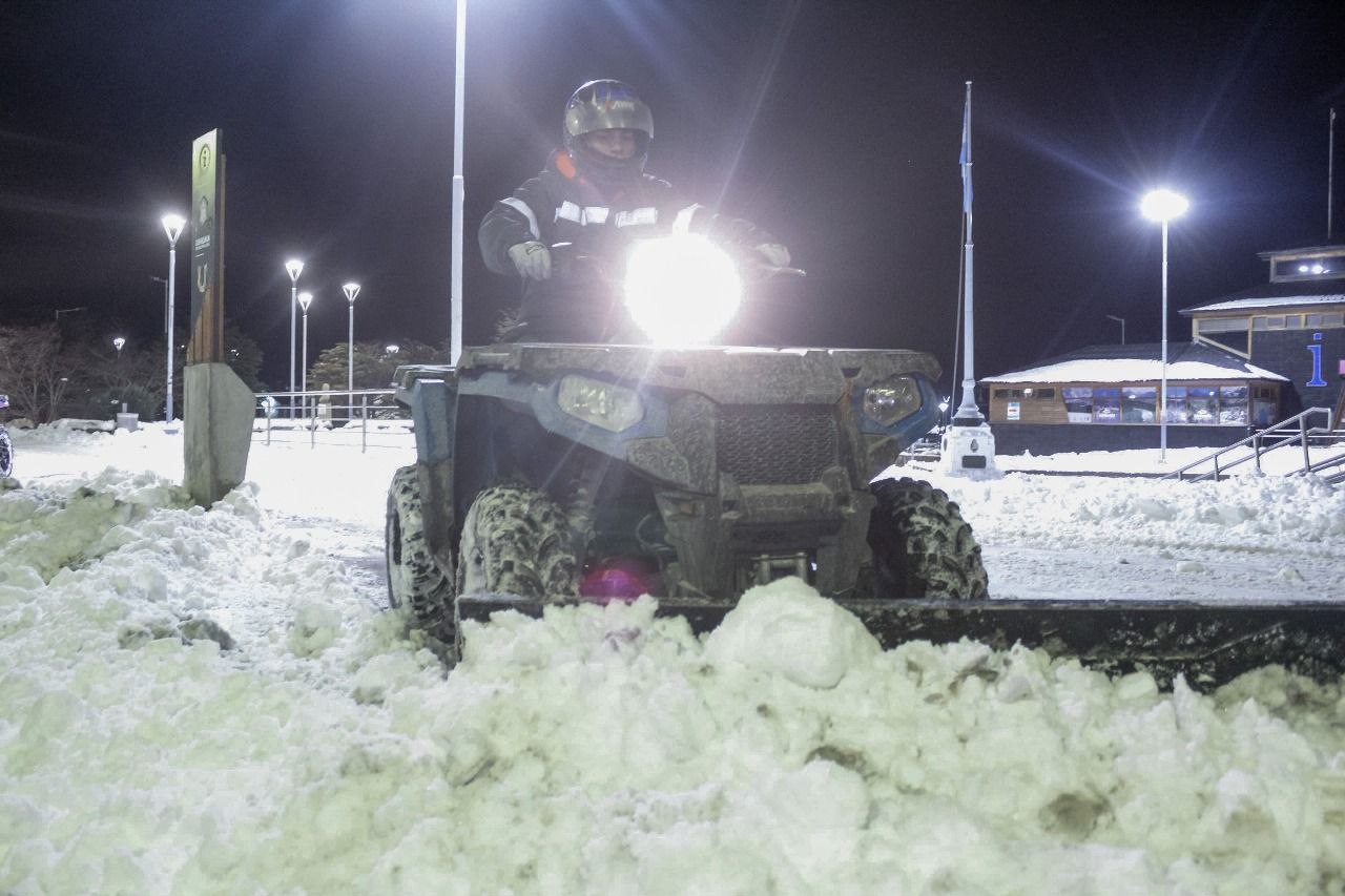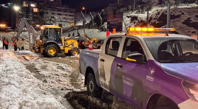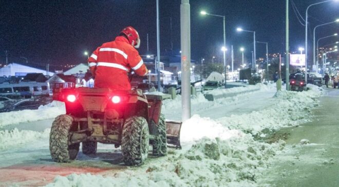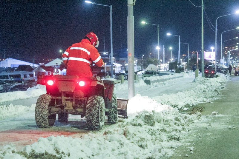 La Municipalidad de Ushuaia a través de la Secretaría de Planificación e Inversión Pública y con la colaboración de la Secretaría de Medio Ambiente y la Dirección de Tránsito, realizó tareas de limpieza, despeje y retiro de montículos de nieve durante el fin de semana, con el objetivo de garantizar la transitabilidad y seguridad en la ciudad.