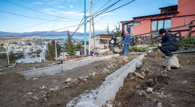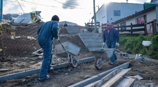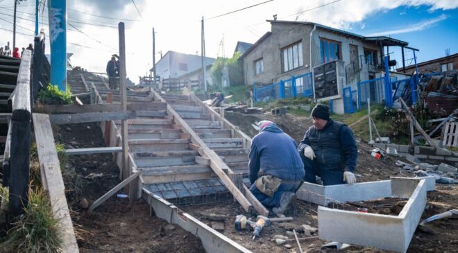La Municipalidad de Ushuaia a través de la Secretaría de Planificación e Inversión Pública avanza con la puesta en valor y reconstrucción de la escalera ubicada en Karukinka Norte, entre las calles Hol Hol y Yowen.