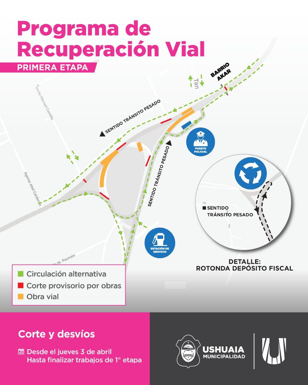 Actualmente, se está mejorando la colectora de tierra paralela a Héroes de Malvinas para desviar el tráfico de ingreso a la ciudad durante los trabajos de recambio de suelo, que se estima durarán entre 10 y 15 días, dependiendo de las condiciones climáticas.