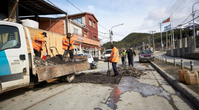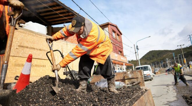 USHUAIA: LA MUNICIPALIDAD CONTINÚA CON TAREAS DE BACHEO Y MANTENIMIENTO EN DISTINTOS PUNTOS DE LA CIUDAD