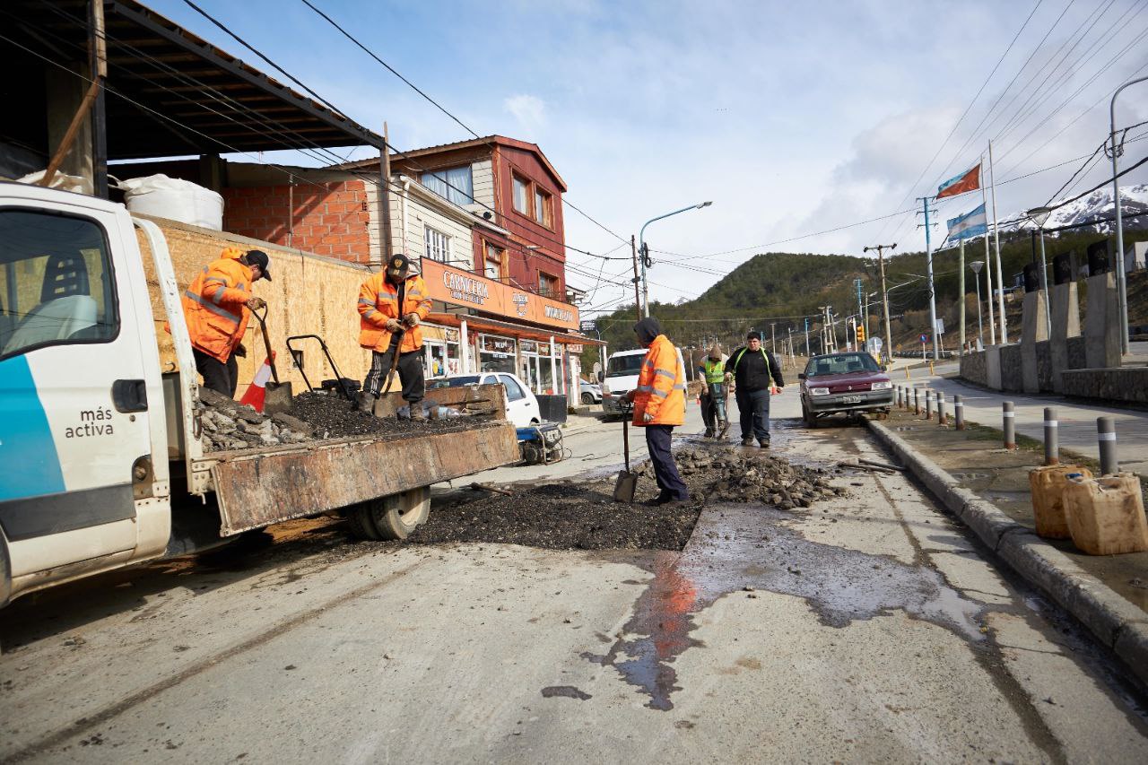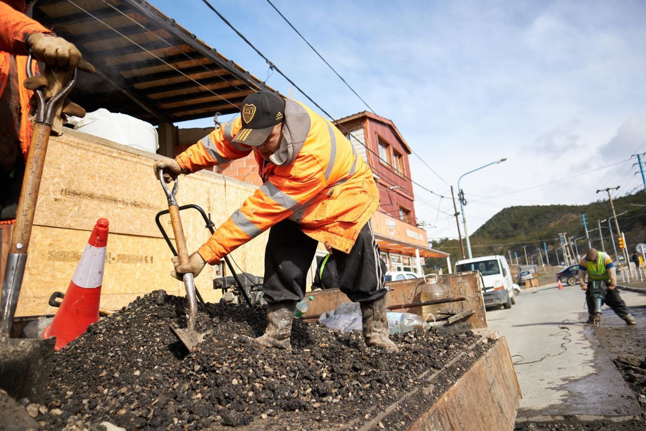 La Municipalidad de Ushuaia a través de la Dirección de Bacheo dependiente de la Secretaría de Planificación e Inversión Pública, continúa realizando trabajos de reparación en distintos sectores de la ciudad, aprovechando las mejoras climáticas y el secado progresivo del suelo.