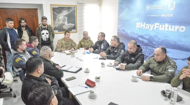 El secretario de Gobierno de la Municipalidad de Ushuaia, Cesar Molina encabezó un encuentro con representantes de Fuerzas Armadas y de Seguridad y Defensa Civil municipal para coordinar los trabajos a realizar en los días próximos al recital de La Renga del 25 de noviembre.