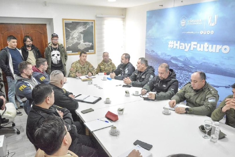 El secretario de Gobierno de la Municipalidad de Ushuaia, Cesar Molina encabezó un encuentro con representantes de Fuerzas Armadas y de Seguridad y Defensa Civil municipal para coordinar los trabajos a realizar en los días próximos al recital de La Renga del 25 de noviembre.