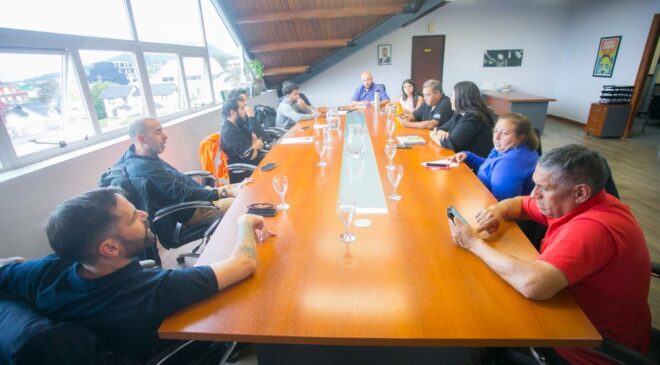 El secretario de Gobierno, César Molina, acompañado de las áreas de Seguridad Urbana y de Tránsito municipal, mantuvieron un encuentro con representantes de las empresas Navijet, Ushuaia Incoming, Tolkeyen y Logística Jr., con quienes definieron la operación para el arribo del crucero.