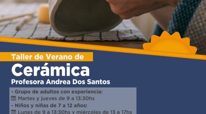 Dentro de las propuestas estarán presentes el taller de Cerámica a cargo de la profesora Andrea Dos Santos, a dictarse en la Casa de la Cultura con grupos para adultos con experiencia de 09:00 a 13:30 horas los días martes y jueves. En el caso de niños y niñas de entre 7 y 12 años, será los días lunes de 09:00 a 13:30 horas y los días miércoles de 13:00 a 17:00 horas. Dibujo, dictado por el profesor Omar Hirsig, estará destinado a adolescentes de más de 16 años y adultos los días sábado de 18:00 a 20:00 horas en los Talleres Culturales Municipales en Fagnano N° 486, mientras que escultura, también junto a Omar Hirsig, será los días viernes de 18:00 a 20:00 horas en el mismo espacio para mayores de 18 años. En el ámbito musical se brindará el taller de Guitarra por el profesor Agustín Valencia para niños, niñas mayores de 10 años, adolescentes y adultos con clases de lunes a viernes de 14:00 a 18:00 horas en Fagnano N° 486.