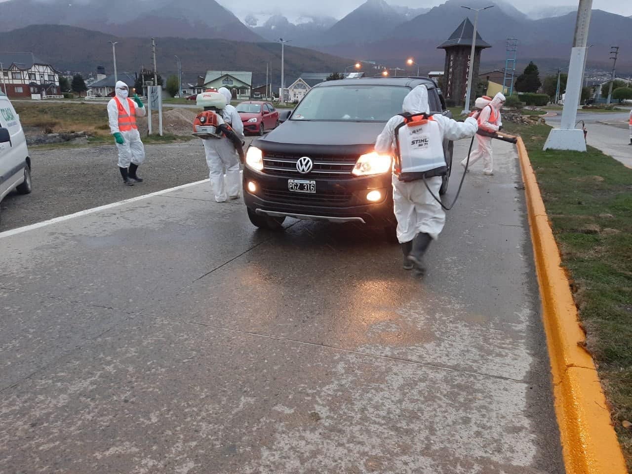#USHUAIA LA MUNICIPALIDAD DESINFECTÓ LOS VEHÍCULOS QUE CONCURRIERON A BUSCAR PASAJEROS AL AEROPUERTO