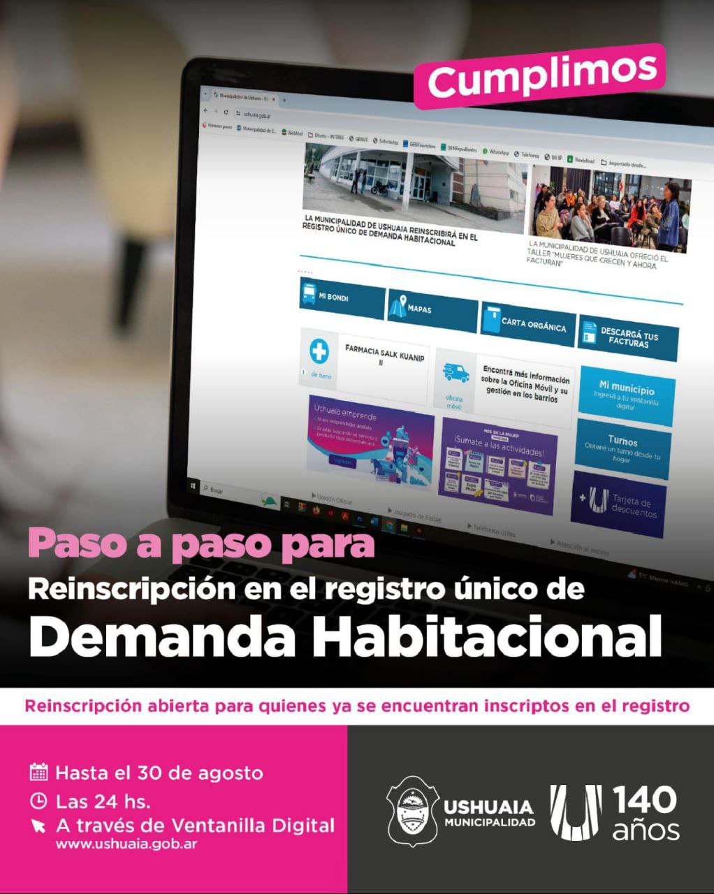 El período para la reinscripción en el Registro Único de Demanda Habitacional (RUDH) se extendió hasta el 30 de agosto mediante una resolución firmada por el secretario de Hábitat y Ordenamiento Territorial de la Municipalidad de Ushuaia, David Ferreyra.