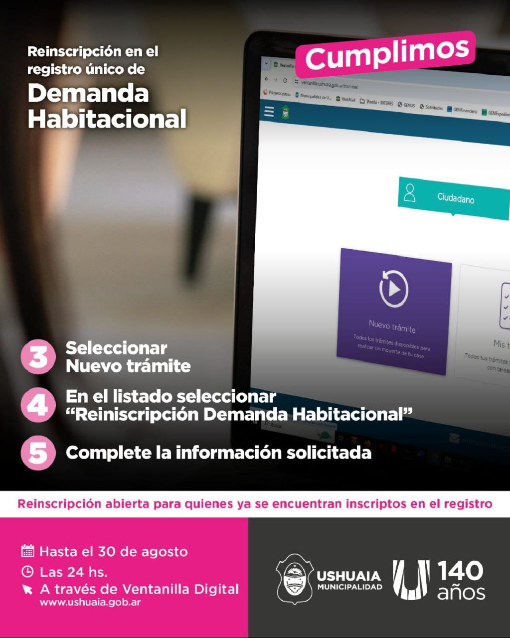 USHUAIA: LA MUNICIPALIDAD EXTIENDE EL PLAZO DE REINSCRIPCIÓN PARA EL REGISTRO ÚNICO DE DEMANDA HABITACIONAL