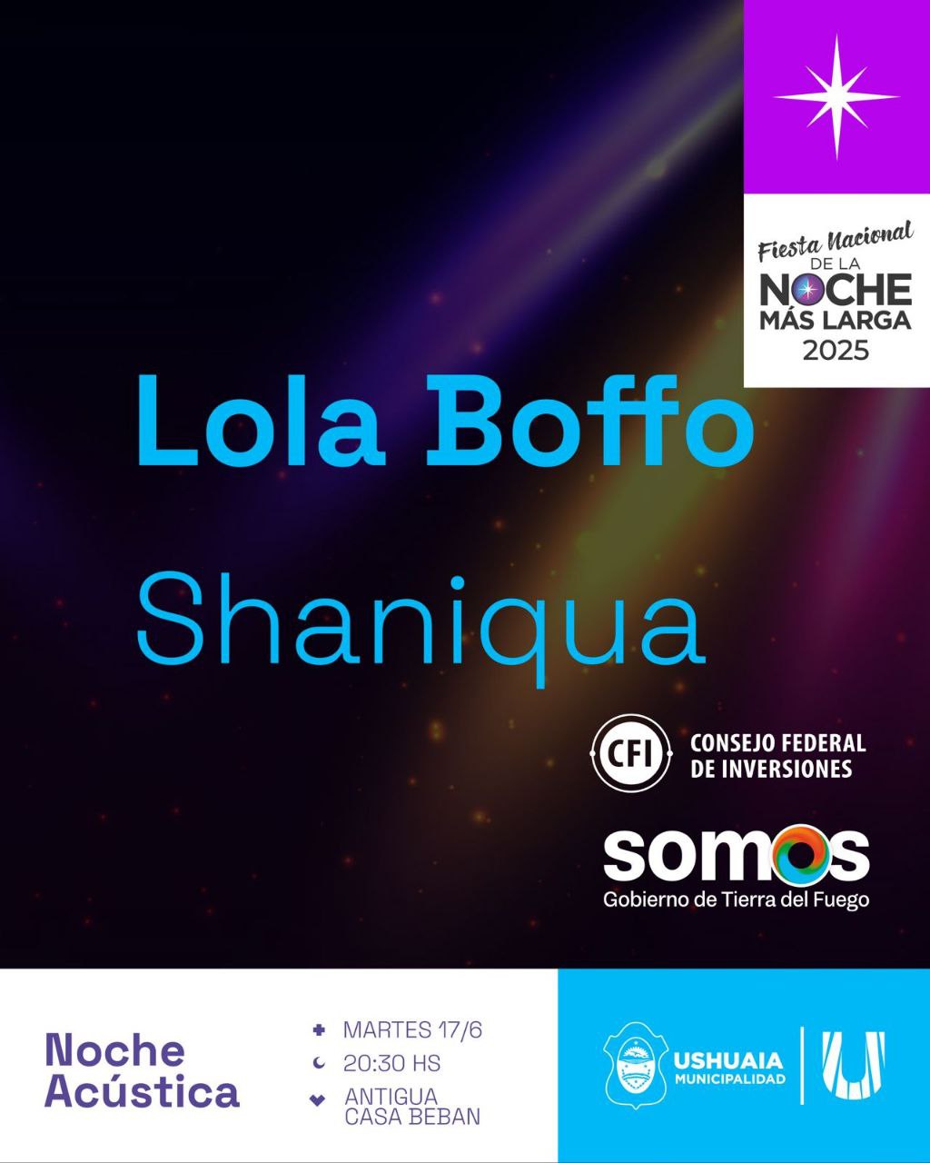 Belén Molina, secretaria de Cultura y Educación, recalcó que “continuando con las diversas noches de este gran festejo popular que el intendente Walter Vuoto ha potenciado y ampliado desde su gestión, estamos muy contentos de poder contar con una obra teatral de trayectoria internacional en nuestra ciudad, así como una Noche Acústica con lo mejor del talento fueguino”.