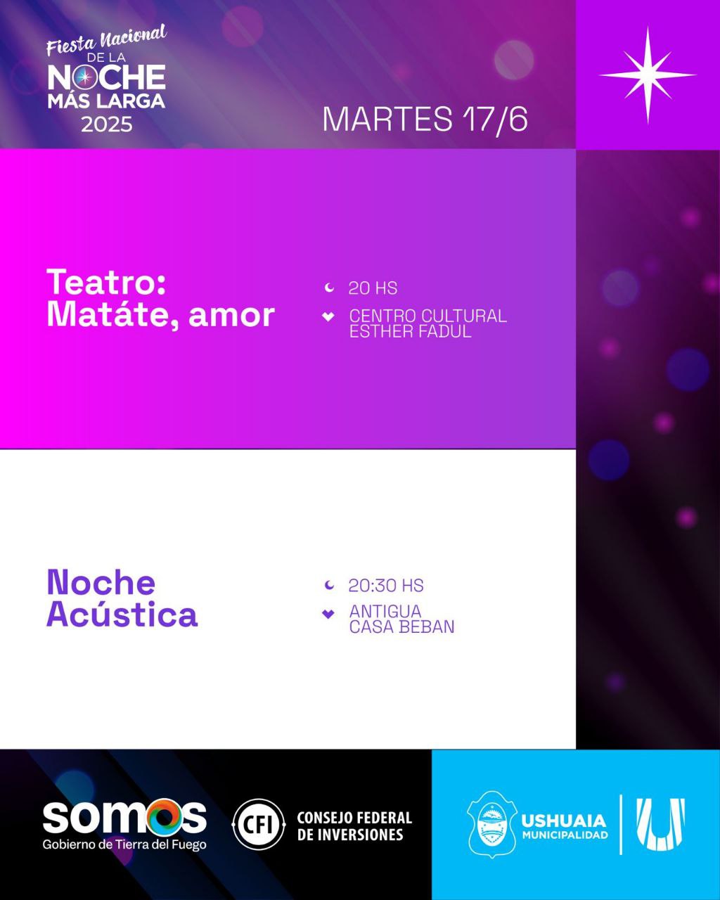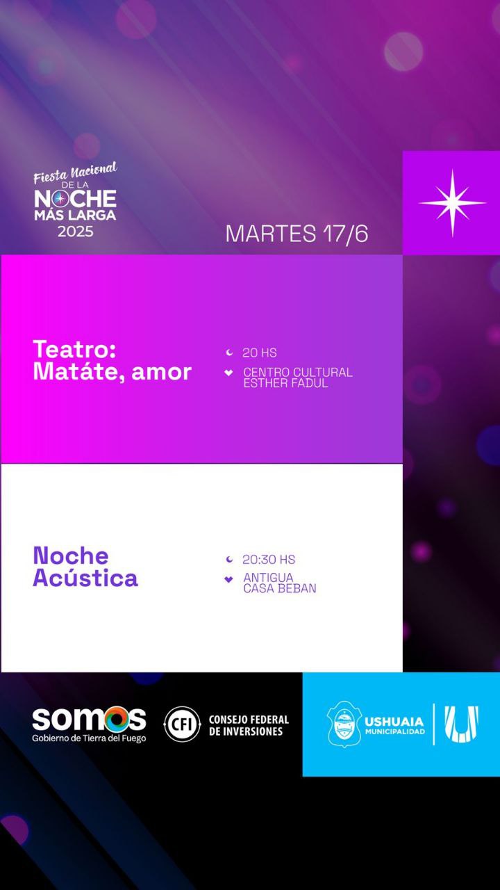 Como parte de las actividades de la Fiesta Nacional de la “Noche Más Larga 2025”, la Secretaría de Cultura y Educación de la Municipalidad de Ushuaia impulsará diversas actividades culturales el día martes 17.