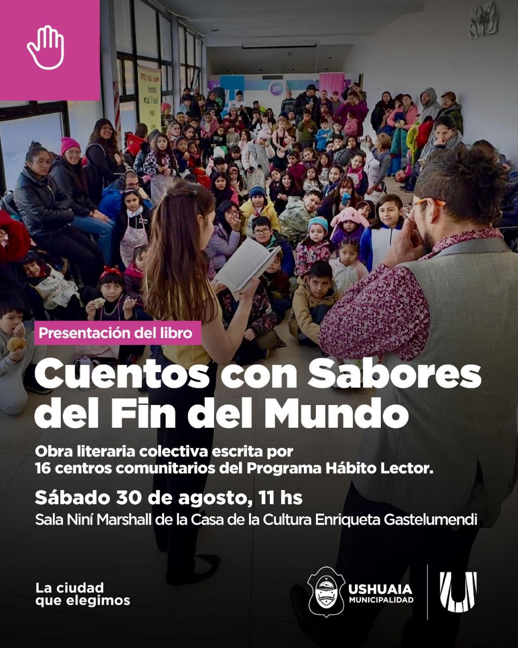 La Secretaría de Cultura y Educación de la Municipalidad de Ushuaia, a través del Programa Hábito Lector “Cocineritos, Cuentos y Relatos”, llevará adelante este sábado 30 de agosto a las 11:00 horas, en la Sala Niní Marshall, la presentación del libro “Cuentos con Sabores del Fin del Mundo”, una obra literaria colectiva escrita por los 16 centro que forman parte del programa.