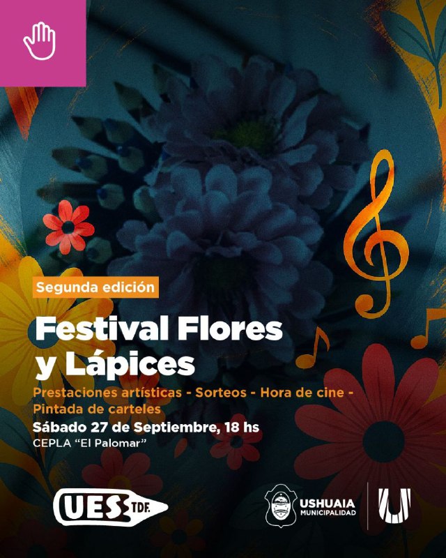 La Secretaría de Cultura y Educación de la Municipalidad de Ushuaia, desde la Coordinación de Juventudes y junto a la Unión de Estudiantes Secundarios Ushuaia, llevará adelante este sábado 27 de septiembre a las 18:00 en el CEPLA “El Palomar” la Segunda Edición del “Festival Flores y Lápices”, un espacio de encuentro, cultura y participación juvenil.