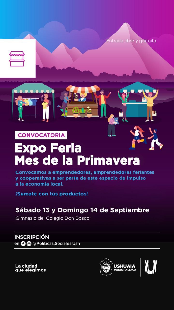 USHUAIA: LA MUNICIPALIDAD INVITA A PARTICIPAR DE LA EXPO FERIA DEL MES DE LA PRIMAVERA EN EL GIMNASIO DEL COLEGIO DON BOSCO