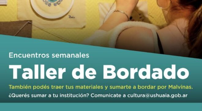 La Municipalidad de Ushuaia, a través de la Secretaría de Cultura y Educación, llevará adelante el “Taller de Bordado” a dictarse los días miércoles de 18:00 a 20:00 horas en la Antigua Casa Beban.