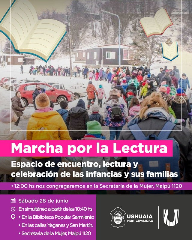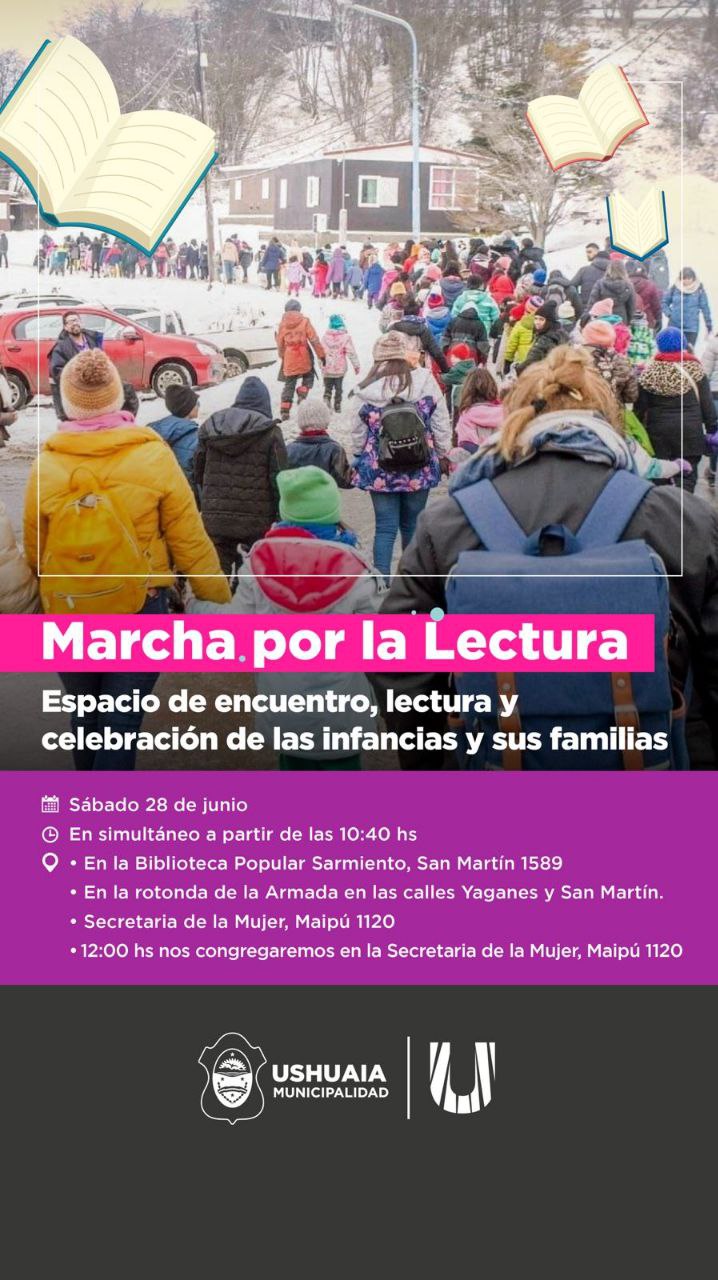 La Secretaría de Cultura y Educación de la Municipalidad de Ushuaia, a través del programa Hábito Lector: Cocineritos, Cuentos y Relatos, llevará adelante este sábado 28 de junio a las 10:40 horas la “Marcha por la Lectura” en conmemoración por el Día del Libro.