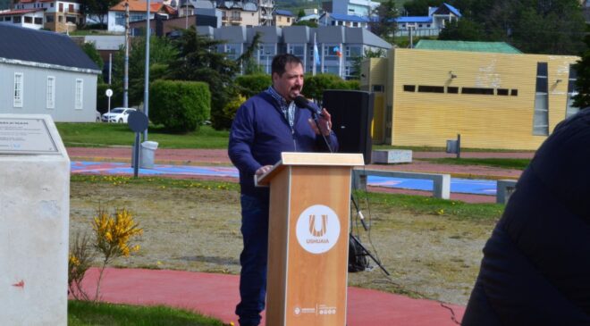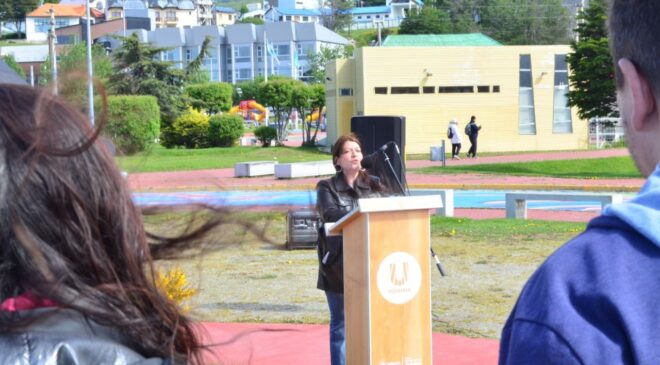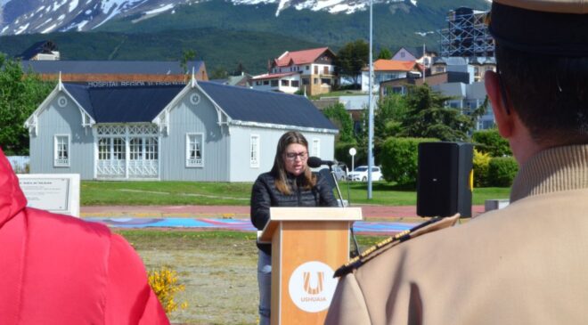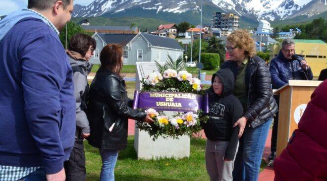 La Municipalidad de Ushuaia llevó adelante en el Espacio de la Memoria del Paseo de las Rosas el acto en conmemoración al “Día del Genocidio Selk’nam”. De la actividad participaron la diputada Carolina Yutrovic, la secretaria de Cultura y Educación, Belén Molina, la secretaria de Planificación e Inversión Pública, María Belén Borgna, la subsecretaria de Cultura y parte de la comunidad Selk’nam, Vanina Ojeda, el subsecretario de Relaciones Parlamentarias y Articulación Política, Omar Becerra, los concejales Nicolás Pelloli y Yésica Garay, nativos de la a comunidad Selk’nam, el vicepresidente de la Asociación Civil Simón Bolívar, Fuerzas de Seguridad, la Banda Municipal, los embajadores de la ciudad y acompañando las banderas de ceremonia Benjamín Ojeda y Javier Ojeda, integrantes del pueblo Selk’nam.